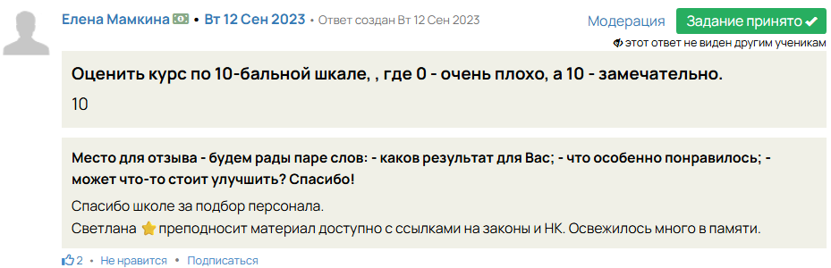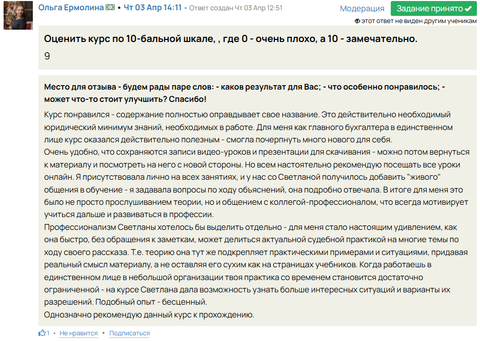 Отдельное спасибо куратору Олесе, на все вопросы отвечала сразу подробно. И Людмила тоже давала разъяснения.